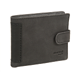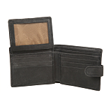 Внутри три отделения для купюр, два потайных кармана, сетчатый карман и девять кармашков для пластиковых карт. Закрывается клапаном на кнопке. Имеет защитный слой от считывания карт RFID-Protection.