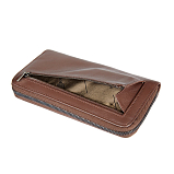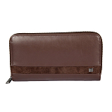 Внутри два отделения для купюр, разделённых карманом для монет на молнии. На внутренних стенках расположены два кармана для документов, два сетчатых кармана и восемь кармашков для пластиковых карт. Закрывается на молнию по периметру. С внешней стороны на задней стенке карман на молнии.