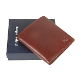 Функциональное портмоне из премиальной натуральной кожи Vachetta. Выполняет функции кошелька. Раскладывается пополам. Внутри отделение для купюр и карман на молнии. 6 кармашков для пластиковых карт. Потайной и сетчатый карманы. Товар упакован в подарочную коробку от бренда Sergio Belotti.