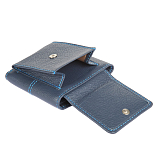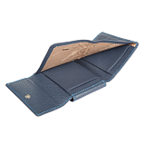 Внутри одно отделение для купюр, потайной карман и два кармашка для пластиковых карт. Закрывается клапаном на кнопке. С внешней стороны на задней стенке расположен карман для монет на кнопке.
