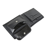 Внутри два отделения для купюр, карман для монет на кнопке, потайной кармашек, два кармашка для документов и три кармашка для пластиковых карт.