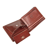 Функциональное портмоне из гладкой натуральной кожи Vachetta. Выполняет функции кошелька. Раскладывается пополам. Внутри 2 отделения для купюр и карман для монет на кнопке. 2 сетчатых кармана и 4 кармашка для пластиковых карт. Товар упакован в подарочную коробку от бренда Sergio Belotti.