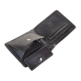 Функциональное портмоне из гладкой натуральной кожи Vachetta. Выполняет функции кошелька. Раскладывается пополам. Внутри 2 отделения для купюр и карман для монет на кнопке. 3 кармашка для пластиковых карт. Товар упакован в подарочную коробку от бренда Sergio Belotti.