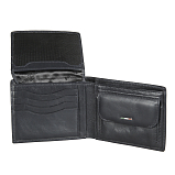 Функциональное портмоне из натуральной кожи. Выполняет функции кошелька. Раскладывается пополам. Внутри 2 отделения для купюр и карман для монет на кнопке. 2 кармана для документов. Потайной карман. 4 кармашка для пластиковых карт и сетчатый карман. Товар упакован в подарочную коробку от бренда Sergio Belotti.
