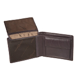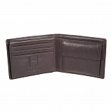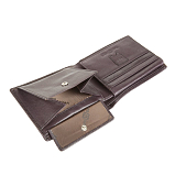 Внутри два отделения для купюр, карман для монет на кнопке, потайной карман, карман для SIM-карты, два сетчатых кармана и три кармашка для пластиковых карт.