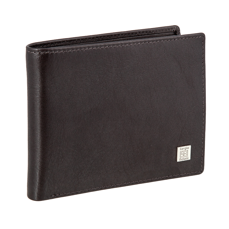 Функциональное портмоне из мягкой натуральной кожи NAPPA. Раскладывается пополам. Внутри два отделения для купюр, карман для монет на кнопке, один потайной карман, два кармана в сеточку, три кармашка для пластиковых карт и кармашек для SIM-карты. Товар упакован в подарочную коробку от бренда Sergio Belotti.