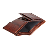 Внутри два отделения для купюр, карман для монет на кнопке, четыре кармашка для документов, потайной карман, сетчатый карман и шесть кармашков для пластиковых карт.