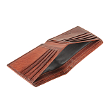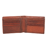 Мужское портмоне из натуральной патинированной кожи коричневого цвета. Портмоне раскладывается пополам, внутри два отделения для купюр, два потайных кармана и восемь кармашков для пластиковых карт. Поставляется в фирменной коробке от бренда Gianni Conti.