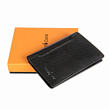 Раскладывается пополам. Внутри портмоне одно отделение для купюр и восемь кармашков для пластиковых карт.