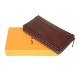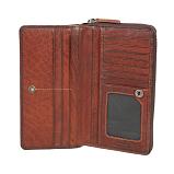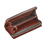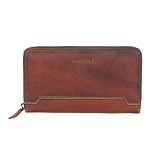 Портмоне закрывается на молнию. Внутри два отдела для купюр, карман для мелочи на молнии, два кармана для документов, восемь кармашков для пластиковых карт. Снаружи на передней стенке отделение на кнопке, в котором три кармана для документов, сетчатый кармашек, тринадцать кармашков для пластиковых карт