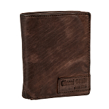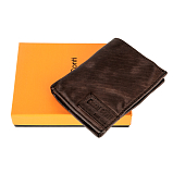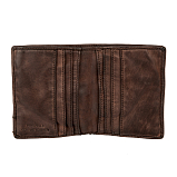 Портмоне из натуральной винтажной кожи коричневого цвета. Раскладывается пополам, внутри одно отделение для купюр и восемь кармашков для пластиковых карт.