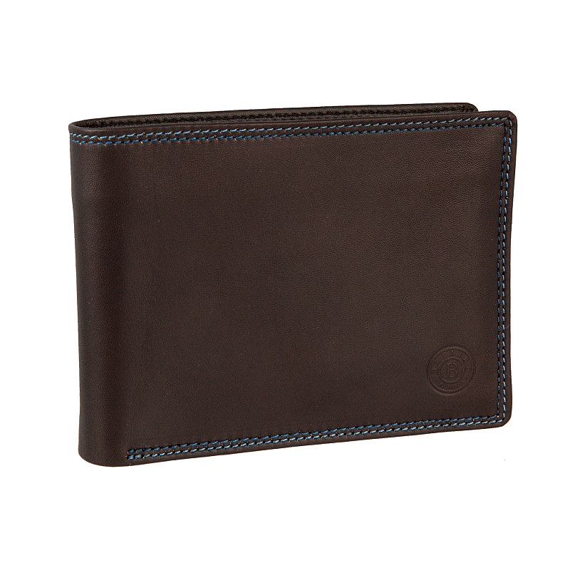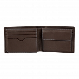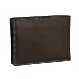 Портмоне раскладывается пополам, внутри два отделения для купюр, кармашек для монет на кнопке, два потайных кармана, один сетчатый, шесть кармашков для пластиковых карт. Имеет защитный слой от считывания карт RFID Protection.