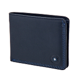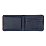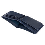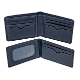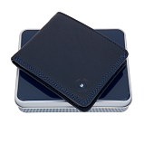 Мужское портмоне из натуральной кожи, раскладывается пополам, внутри отделение для купюр, четыре потайных кармана, шесть кармашков для пластиковых карт. Имеется съемный вкладыш с сетчатым карманом для пропуска и тремя отделениями для пластиковых карт. Оснащено RFID-защитой, что позволяет защитить банковские карты от считывания. Упаковано в подарочную жестяную коробку.