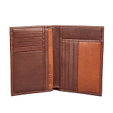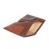 Внутри два отделения для купюр, два потайных кармана, три кармана для документов и девять кармашков для пластиковых карт.
