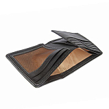 Внутри два отделения для купюр, два кармана для документов, сетчатый карман и тринадцать кармашков для пластиковых карт.
