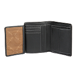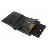 Внутри два отделения для купюр, карман для монет на кнопке, потайной карман, четыре кармана для документов, сетчатый карман и шесть кармашков для пластиковых карт.