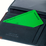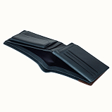 Портмоне раскладывается пополам. Внутри два отдела для купюр, семь кармашков для пластиковых карт, три кармана для документов, сетчатый карман для пропуска, два потайных кармана, отделение для монет- закрывается клапаном на кнопке.