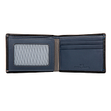 Мужское портмоне из натуральной кожи, раскладывается пополам, внутри два отделения для купюр, два потайных кармана, шесть кармашков для пластиковых карт, сетчатое отделение для пропуска. Оснащено RFID-защитой, что позволяет защитить банковские карты от считывания. Упаковано в подарочную жестяную коробку.
