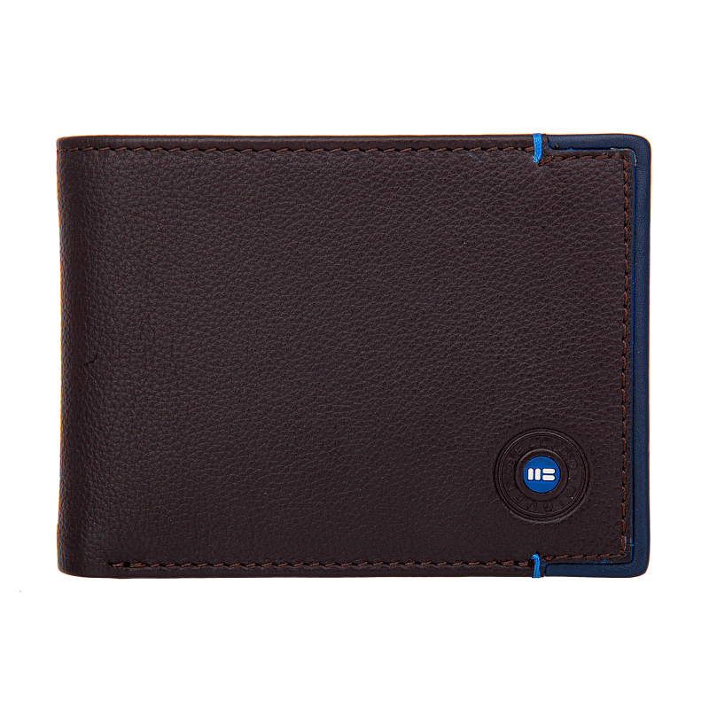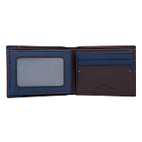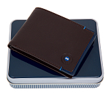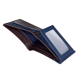 Мужское портмоне из натуральной кожи, раскладывается пополам, внутри два отделения для купюр, два потайных кармана, шесть кармашков для пластиковых карт, сетчатое отделение для пропуска. Оснащено RFID-защитой, что позволяет защитить банковские карты от считывания. Упаковано в подарочную жестяную коробку.