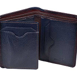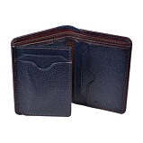 Мужское портмоне из натуральной кожи, раскладывается пополам, внутри два отдела для купюр, два потайных кармана, шесть кармашков для пластиковых карт, сетчатый карман. Оснащено RFID-защитой, что позволяет защитить банковские карты от считывания. Упаковано в подарочную жестяную коробку.