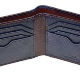Мужское портмоне из натуральной кожи, раскладывается пополам, внутри отделение для купюр, два потайных кармана, восемь кармашков для пластиковых карт. Оснащено RFID-защитой, что позволяет защитить банковские карты от считывания. Упаковано в подарочную жестяную коробку.