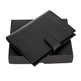 Функциональное кожаное мужское портмоне с обложкой для автодокументов и паспорта, черного цвета от Sergio Belotti