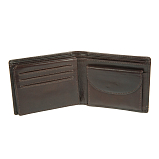 Портмоне из натуральной кожи раскладывается пополам. Внутри два отделения для купюр, карман для монет на кнопке, два потайных кармана, сетчатый карман и шесть кармашков для пластиковых карт.