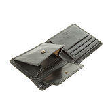 Внутри два отделения для купюр, карман для монет на кнопке, потайной карман и четыре кармашка для пластиковых карт.