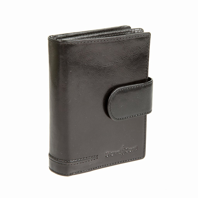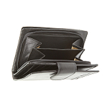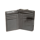 Внутри два отделения для купюр, четыре кармана для документов и шесть кармашков для пластиковых карт. Закрывается клапаном на кнопке. С внешней стороны имеется карман для монет на молнии.