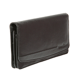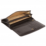 Внутри два отделения для купюр, карман для монет на молнии, четыре кармана для документов, карман на молнии и шесть кармашков для пластиковых карт. Закрывается клапаном на кнопке.