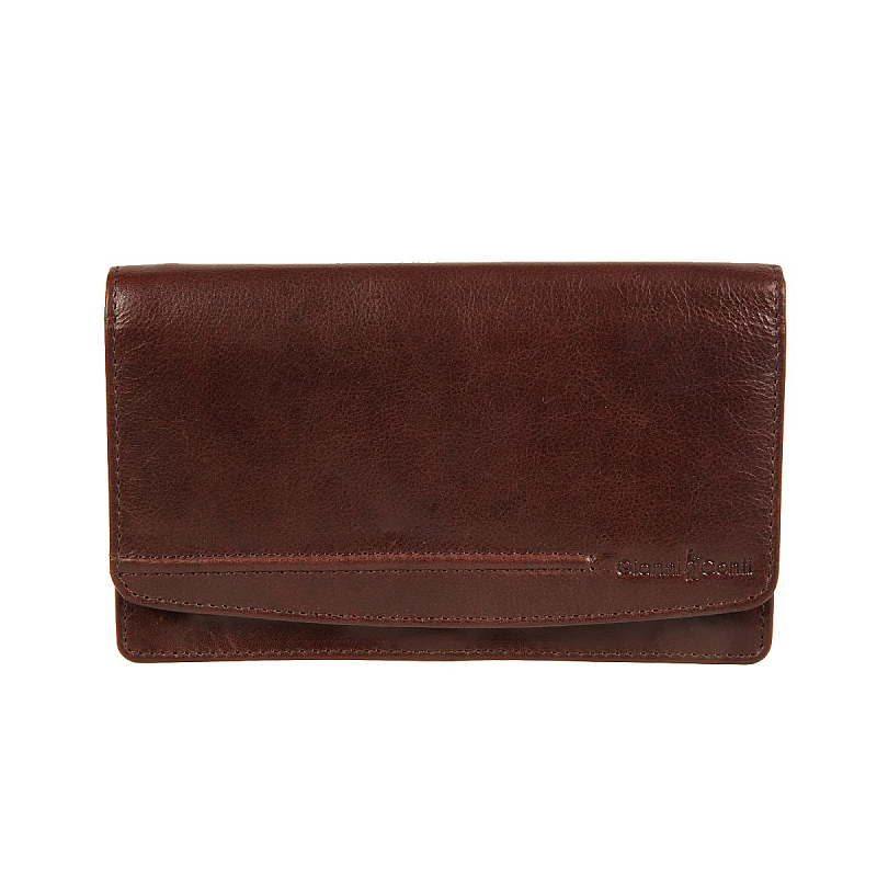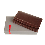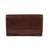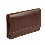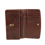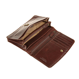 Внутри два отделения для купюр, карман для монет на молнии, четыре кармана для документов, карман на молнии и шесть кармашков для пластиковых карт. Закрывается клапаном на кнопке.