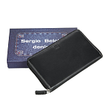 Функциональное портмоне из мягкой натуральной кожи Vachetta. Выполняет функции кошелька. Внутри 4 отделения для купюр и карман для монет на молнии. 2 продольных кармана для документов и 16 кармашков для пластиковых карт. Закрывается на молнию по периметру. Товар упакован в подарочную коробку от бренда Sergio Belotti.