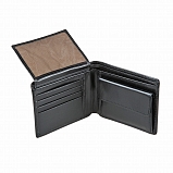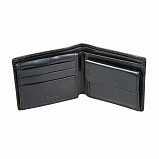 Внутри два отделения для купюр, карман для монет на кнопке, четыре потайных кармана, сетчатый карман и восемь кармашков для пластиковых карт.