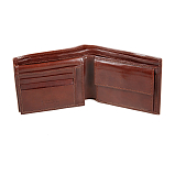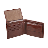 Внутри два отделения для купюр, карман для монет на кнопке, четыре потайных кармана, сетчатый карман и восемь кармашков для пластиковых карт.