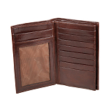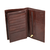 Внутри два отделения для купюр, карман для монет на молнии, три кармана для документов, кармашек для ключей, кармашек для SIM-карты, сетчатый карман и семнадцать кармашков для пластиковых карт.