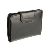 Внутри два отделения для купюр, карман для монет на кнопке, карман для документов на молнии, три потайных кармана, два кармана для документов и двенадцать кармашков для пластиковых карт. Закрывается клапаном на кнопке.
