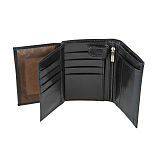 Функциональное портмоне из натуральной кожи. Внутри 2 отделения для купюр, карман для монет на кнопке, карман для документов на молнии. 3 потайных кармана, 2 сетчатых кармашка, 8 кармашков для пластиковых карт. Товар упакован в подарочную коробку от бренда Gianni Conti. Размеры: 13 х 9 х 2 см.