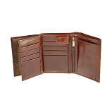 Функциональное портмоне из натуральной кожи. Внутри 2 отделения для купюр, карман для монет на кнопке, карман для документов на молнии. 3 потайных кармана, 2 сетчатых кармашка, 8 кармашков для пластиковых карт. Товар упакован в подарочную коробку от бренда Gianni Conti. Размеры: 13 х 9 х 2 см.