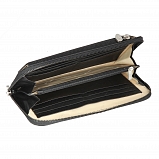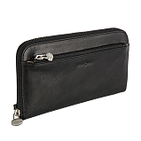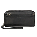 Клатч выполнен из натуральной кожи. Внутри 2 открытых отделения для купюр и одно оригинальное отделение на молнии,12 карманов для визиток/кредиток. Закрывается на молнию. Снаружи на внешней стороне карман на молнии. Имеет защитный слой от считывания кары RFID-Protection. Оснащен съёмным ремнём на запястье. Размеры: 13 х 23 х 2,5 см. Поставляется в фирменной коробке.