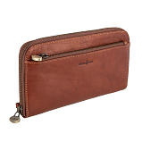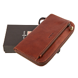 Клатч выполнен из натуральной кожи. Внутри 2 открытых отделения для купюр и одно оригинальное отделение на молнии,12 карманов для визиток/кредиток. Закрывается на молнию. Снаружи на внешней стороне карман на молнии. Имеет защитный слой от считывания кары RFID-Protection. Оснащен съёмным ремнём на запястье. Размеры: 13 х 23 х 2,5 см. Поставляется в фирменной коробке.