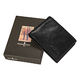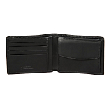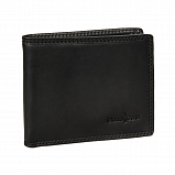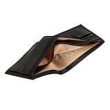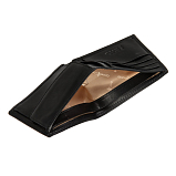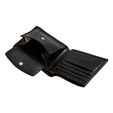 Портмоне раскладывается пополам. Внутри 2 отдела для купюр, отделение для монет на кнопке, потайной карман, 2 кармана для документов, 4 кармана для пластиковых карт. Имеет RFID Protection (защитный слой от считывания карт). Размеры: 9,5 х 12 х 2,5 см.