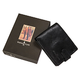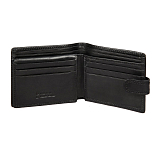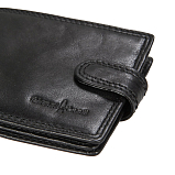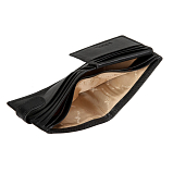 Портмоне закрывается клапаном на кнопке. Внутри три отдела для купюр, сетчатый карман, два кармана для документов, девять кармашков для пластиковых карт. Имеет RFID Protection (защитный слой от считывания карт).