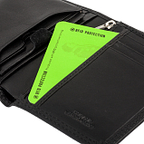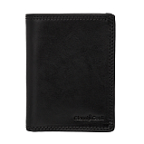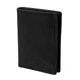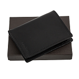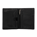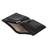 Портмоне выполнено из натуральной кожи, раскладывается пополам.Внутри один отдел для купюр, отдел для мелочи на молнии, два потайных кармана, три кармана для пластиковых карт, выдвижная визитница на шесть визиток.