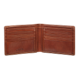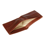 Портмоне раскладывается пополам, внутри два отдела для купюр, восемь кармашков для пластиковых карт, четыре отдела для документов. Имеет защитный слой от считывания кары RFID-Protection.