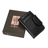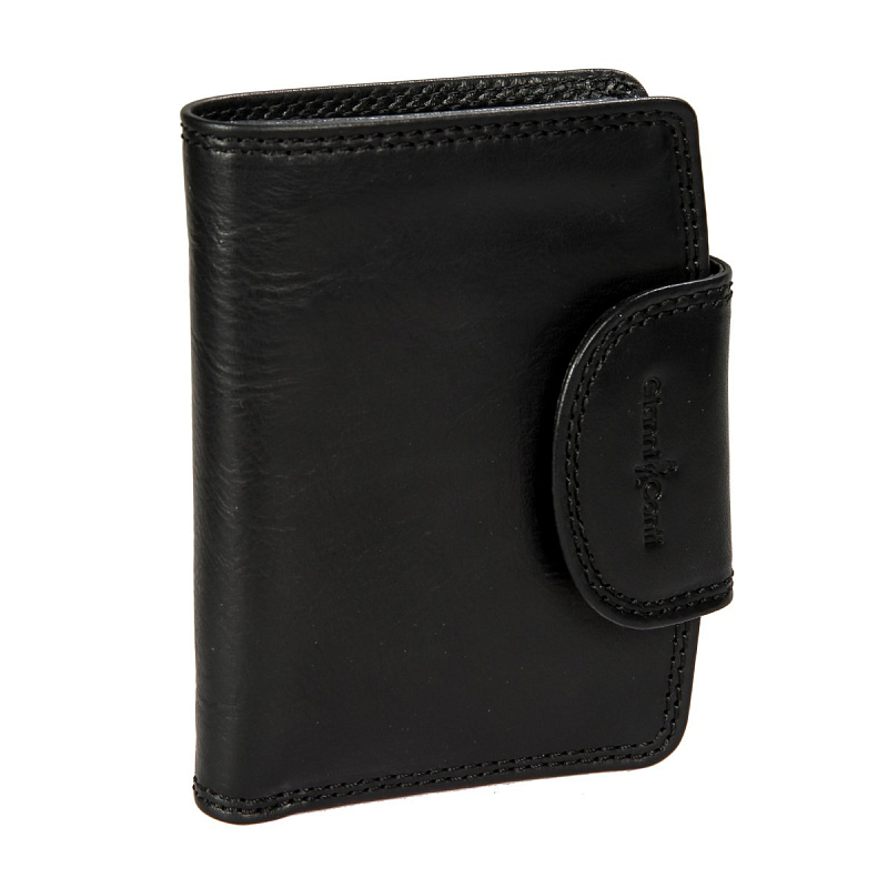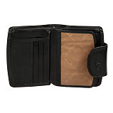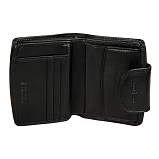 Внутри два отделения для купюр, карман для монет на кнопке, четыре кармана для документов, два потайных кармана, сетчатый карман и шесть кармашков для пластиковых карт. Закрывается клапаном на кнопке. Имеет защитный слой от считывания кары RFID-Protection.