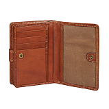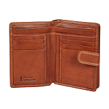 Портмоне состоит из трех отделов. Один отдел закрывается клапаном на кнопке, внутри два отдела для купюр, четыре кармана для документов, шесть кармашков для пластиковых карт. Второй отдел закрывается на кнопку, внутри сетчатый карман, два кармана для документов, четыре кармашка для пластиковых карт. Третий отдел это двойное отделение для монет на моолнии. Имеет RFID Protection (защитный слой от считывания карт).