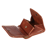 Закрывается клапаном на кнопке, внутри один отдел для купюр, два кармашка для пластиковых карт, отделение для монет на кнопке.