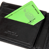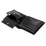 Внутри два отделения для купюр, карман для монет на кнопке, четыре потайных кармана, сетчатый карман и восемь кармашков для пластиковых карт.