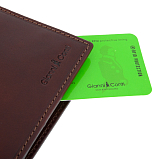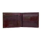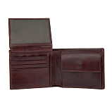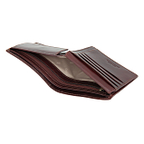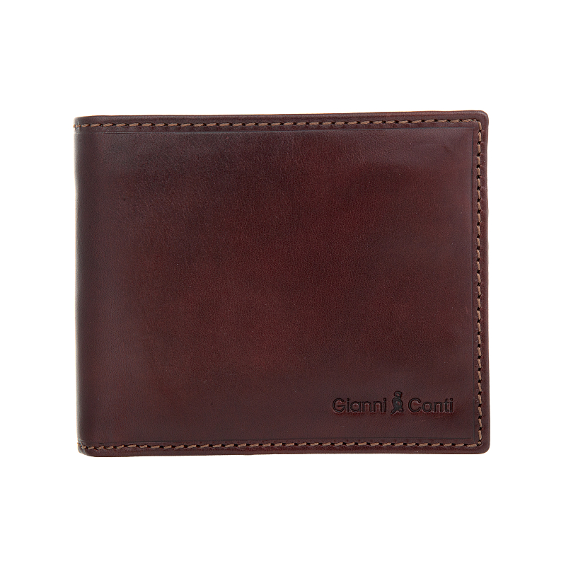 Портмоне мужское выполнено из натуральной кожи, коричневого цвета, бренда Gianni Conti. Портмоне раскладывается пополам. Внутри три отдела для купюр, один из них на молнии, отдел для мелочи, закрывается клапаном на кнопке, одиннадцать кармашков для пластиковых карт, один сетчатый кармашек, одно потайное отделение. Размеры: 10 х 12 х 4 см.