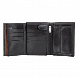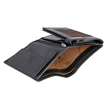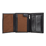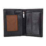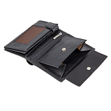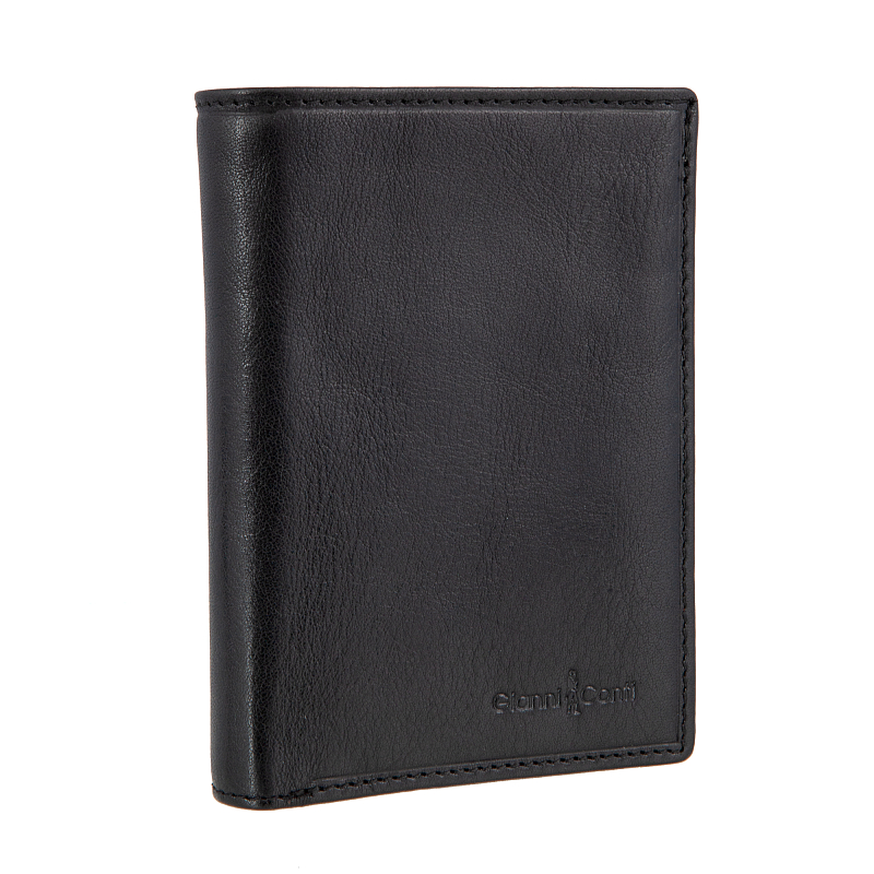 Функциональное портмоне из натуральной кожи. Внутри 2 отделения для купюр, карман для монет на кнопке, карман для документов на молнии. 3 потайных кармана, 2 сетчатых кармашка, 8 кармашков для пластиковых карт. Товар упакован в подарочную коробку от бренда Gianni Conti. Размеры: 13,5 х 10 х 3 см.